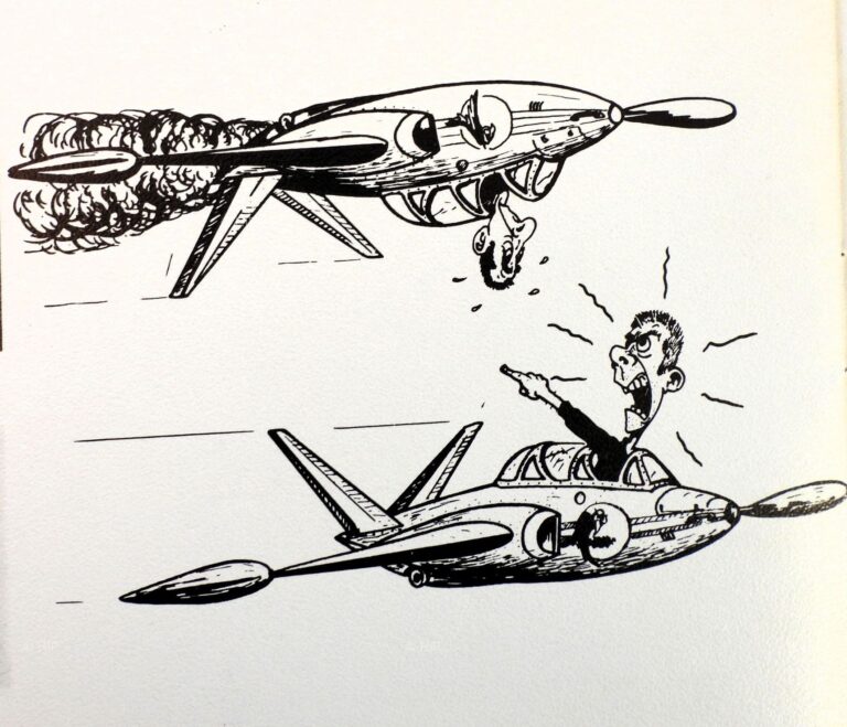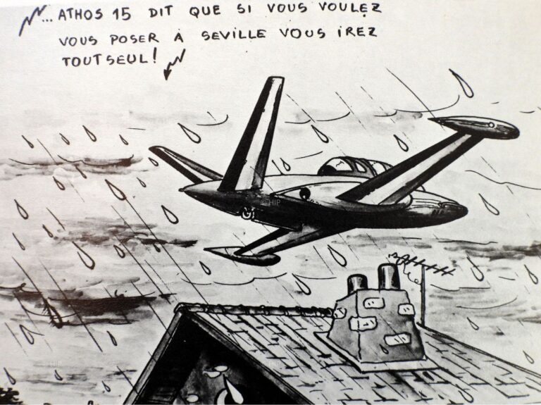 Dessin humoristique tiré de l'ouvrage Patrouille de France 1964-1980 sur Fouga-Magister