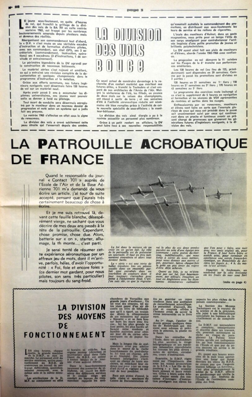 Photo de la Patrouille d'Étampes ou Patrouille de l'École de l'air parue dans le Régional