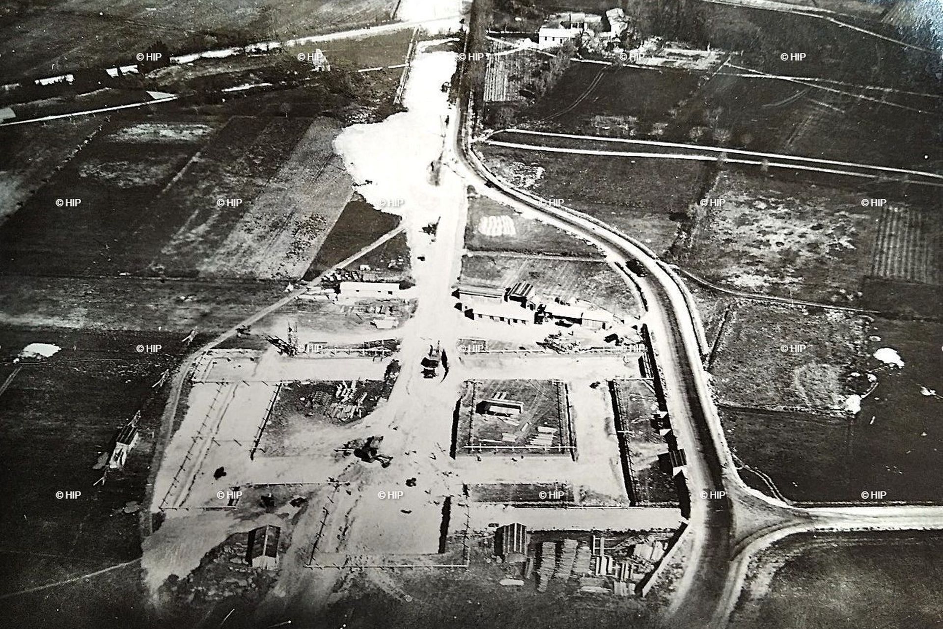 Photographies du chantier de construction du Bâtiment de la Direction de l’Enseignement par l’entreprise Gagneraud. Lettre de l’entreprise Gagneraud sur l’avancement des travaux en 1939 Travaux de terrassement du Bâtiment …