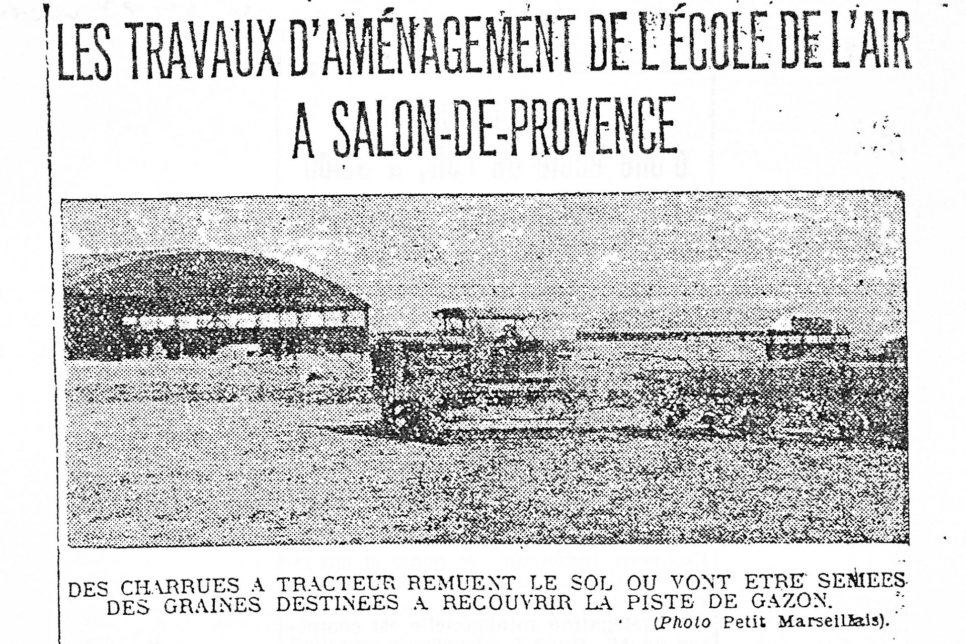 Baraques de l'École en 1936 Article du Petit Marseillais - 27/10/1936 Mission d'observation photo en Juillet 1939, sur Potez 25 Marrakech en 1943 - 1944 Bâtiments et lieux de Salon Chronologie Période 1939 – 1945 Sites historiques