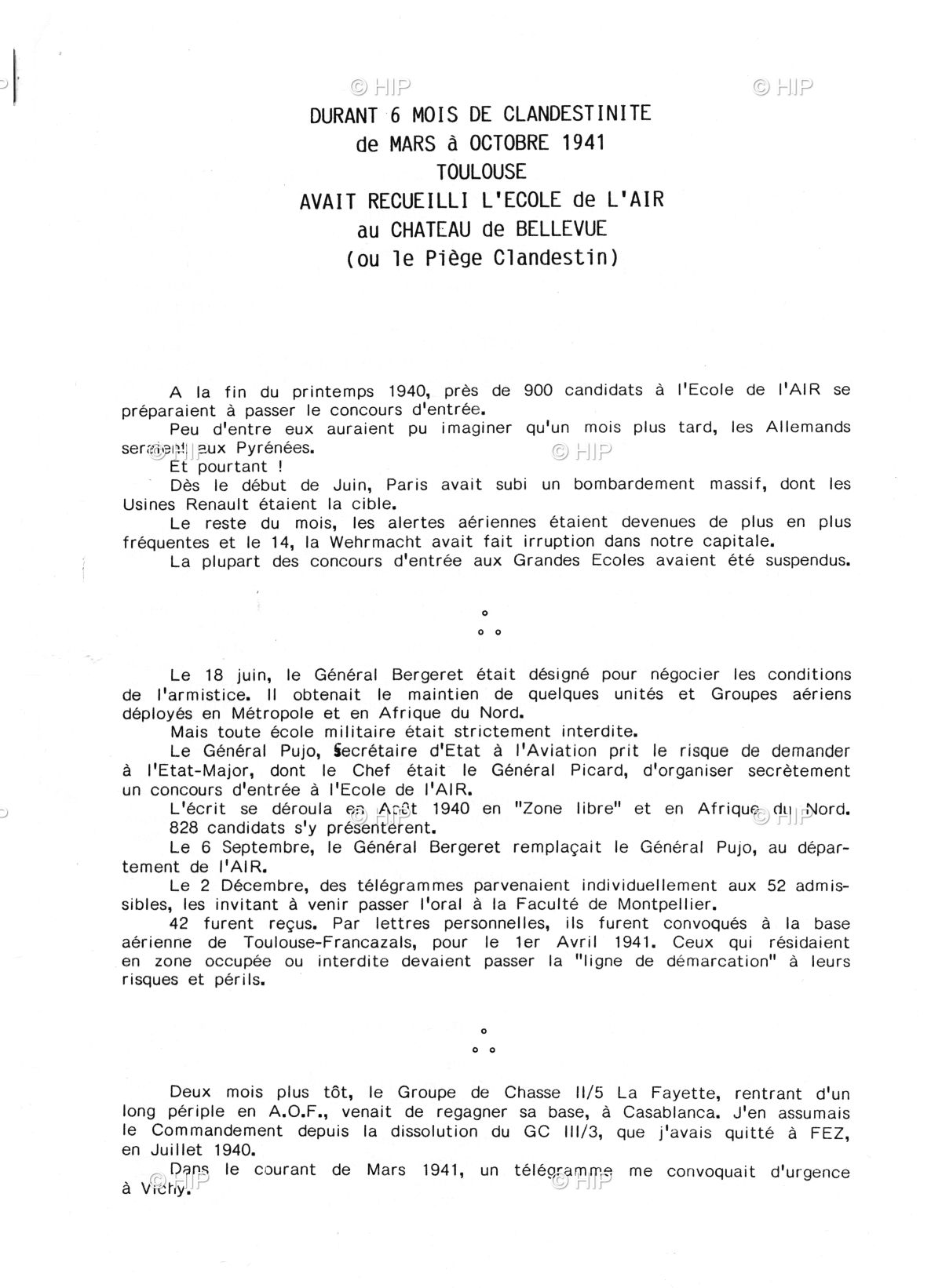 Revue Le Piège – Durant 6 mois de clandestinité, de Mars à Octobre 1941, Toulouse avait recueilli l’École de l’air au château de Bellevue (ou le Piège clandestin)