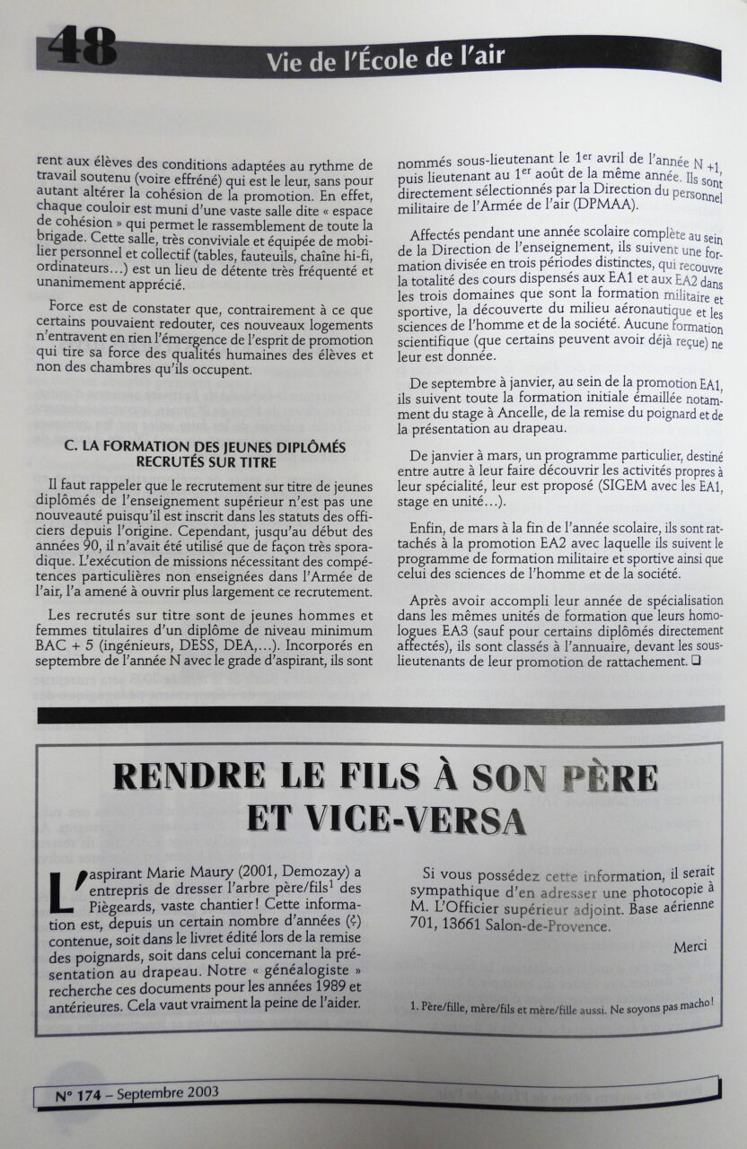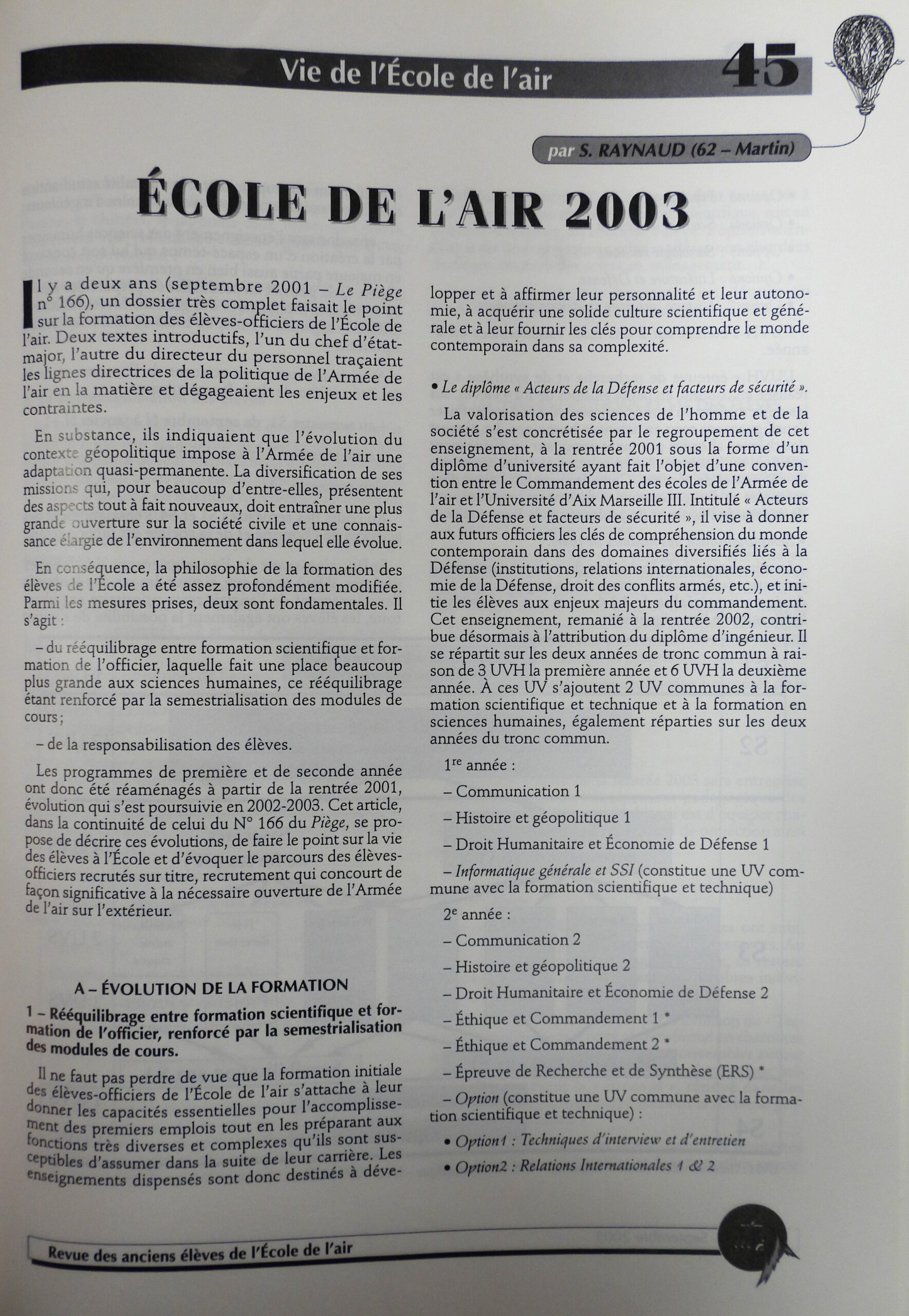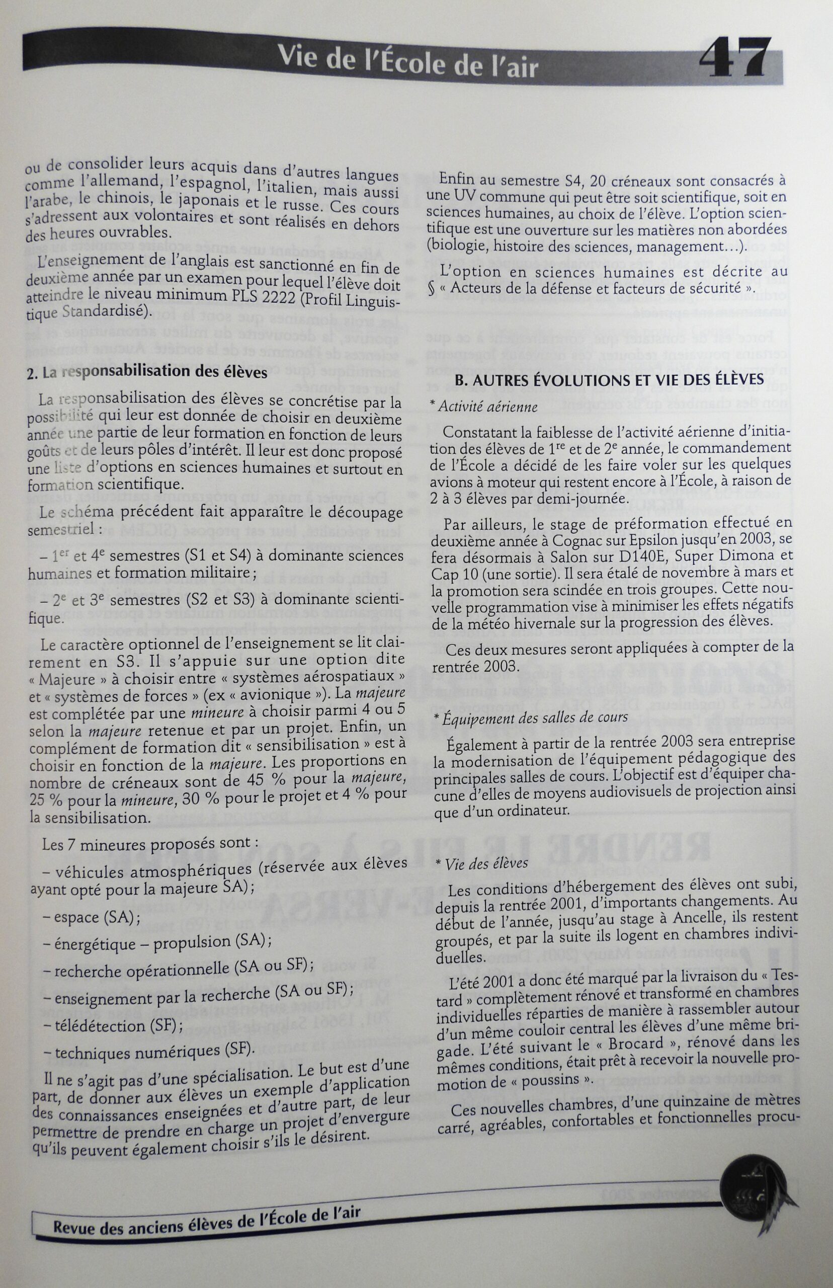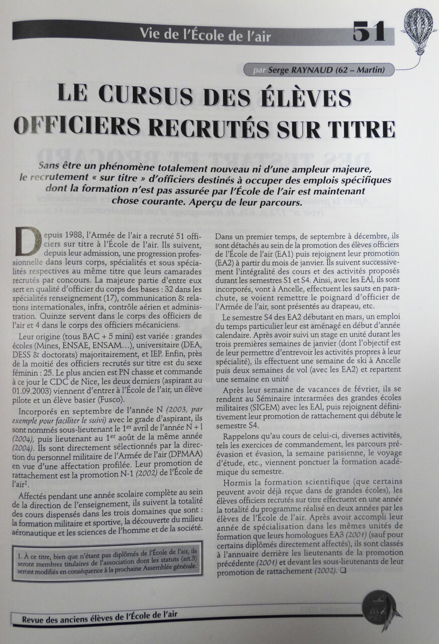 La formation à l’École de l’air (2003)