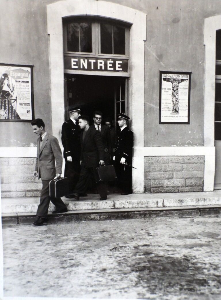 Arrivée des poussins 1953 à la gare de Salon, encadrés par leurs anciens