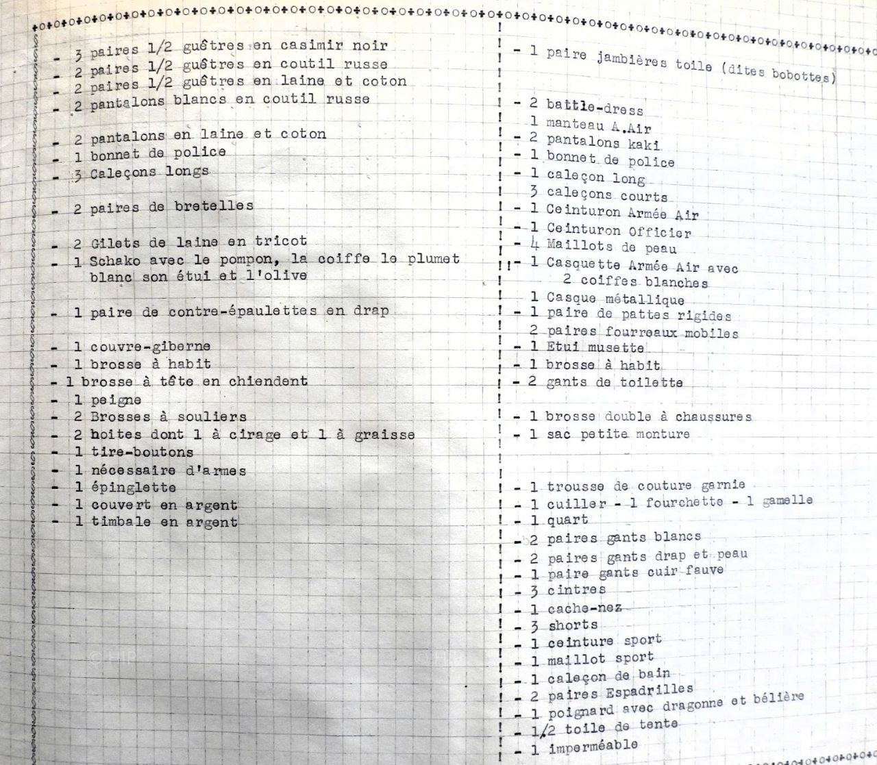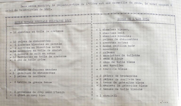 Réception du paquetage années 1950