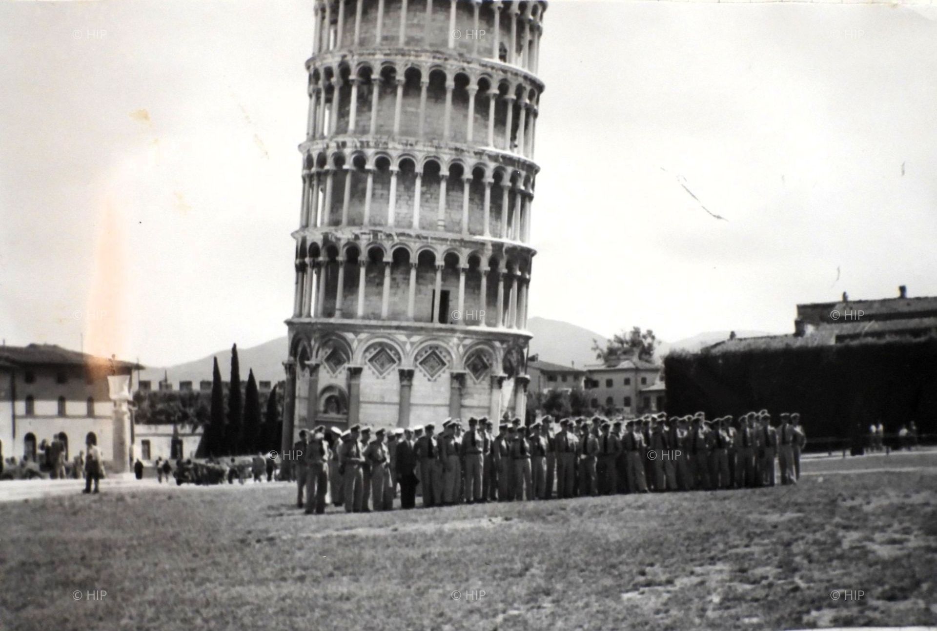 La promotion EA 1952 en voyage d'étude en Italie - En arrière plan la tour de Pise