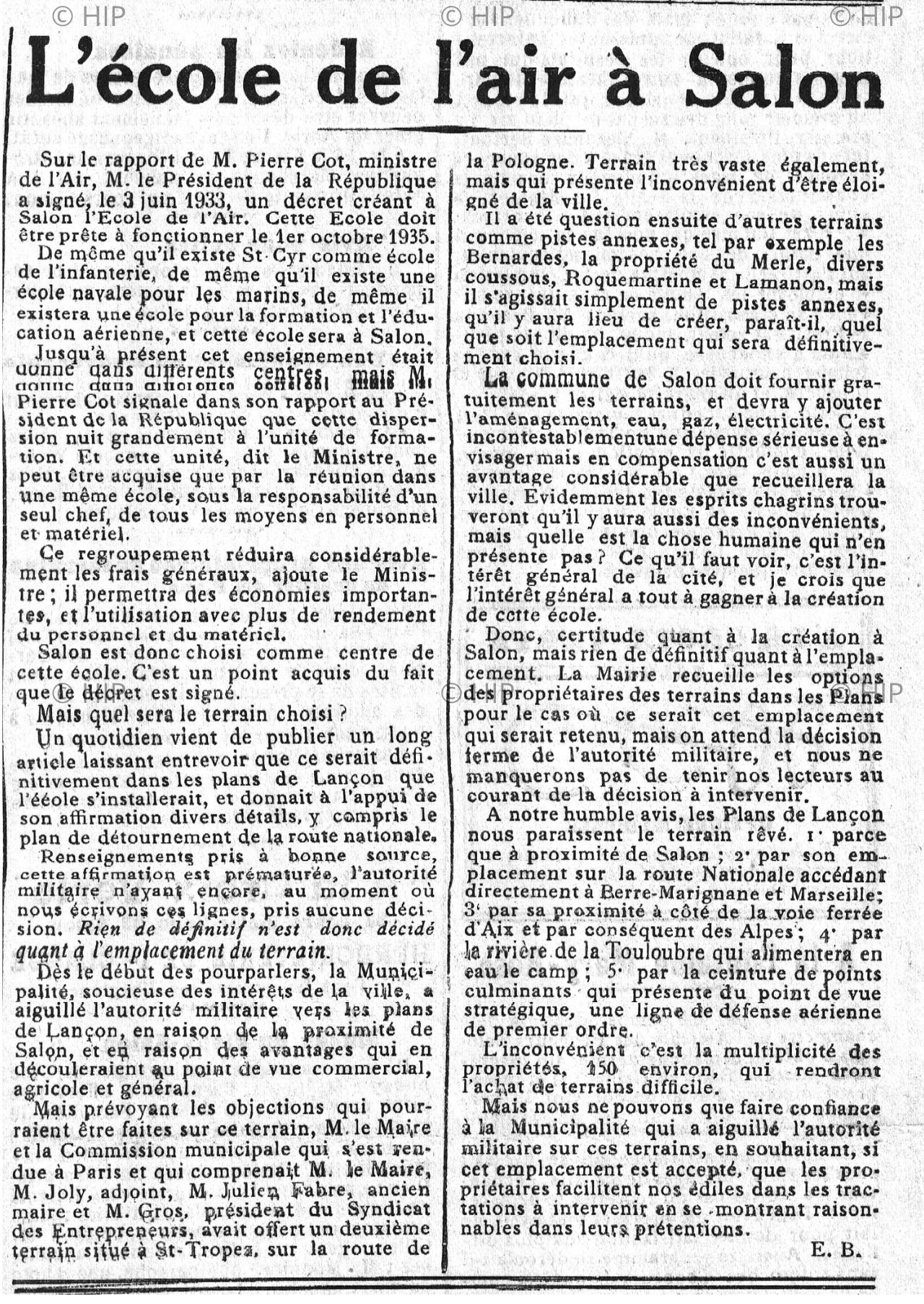 L’École de l’air à Salon de Provence Journal Le Petit Régional, 10 juin 1933 l'École de l'air à Salon Community Manager Vous aimerez aussi L’origine des brisques vertes 3 décembre 2025 Une vocation d’aviateur 3 décembre 2025 L’origine du mot « Piège » 3 décembre 2025