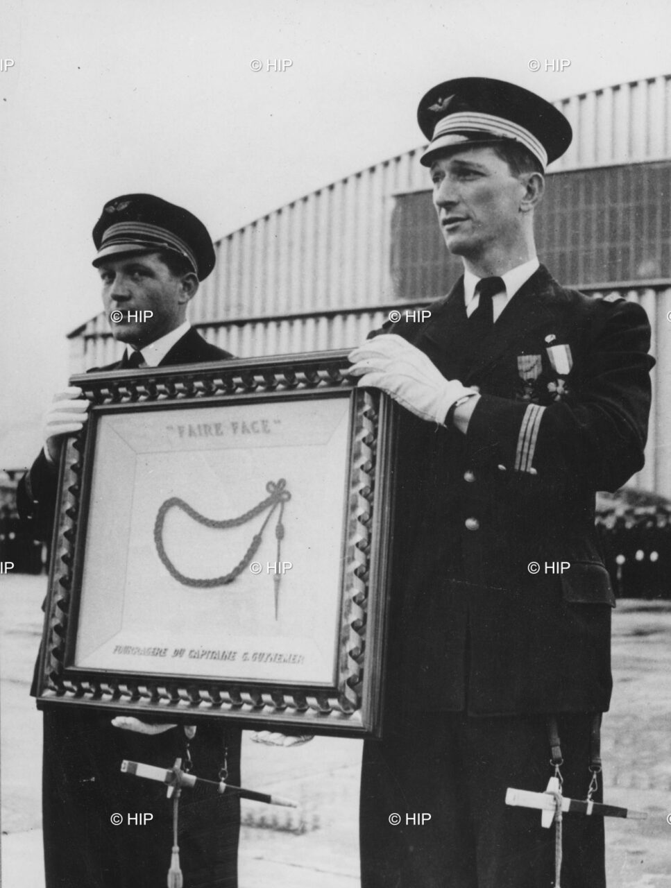 Remise de la fourragère du capitaine Georges Guynemer à l'École de l'air, le 09/04/1948. Cérémonies / ÉvènementsParrainsPatrimoine ÉcoleTraditions des promotions