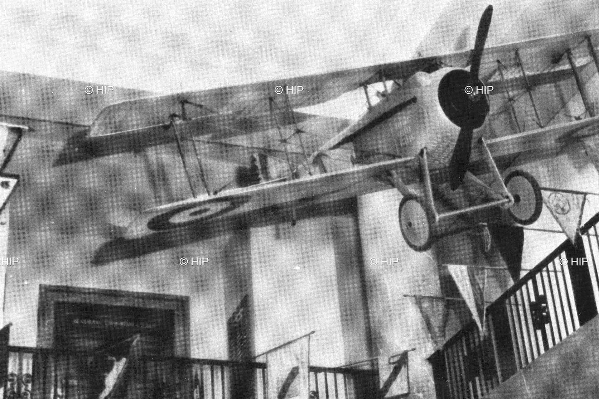 Avion du capitaine Guynemer (grandeur réelle), le Vieux Charles, positionné dans le Temple du Bâtiment de la direction de l'enseignement, aujourd'hui au Musée de l'Air et de l'espace du Bourget
