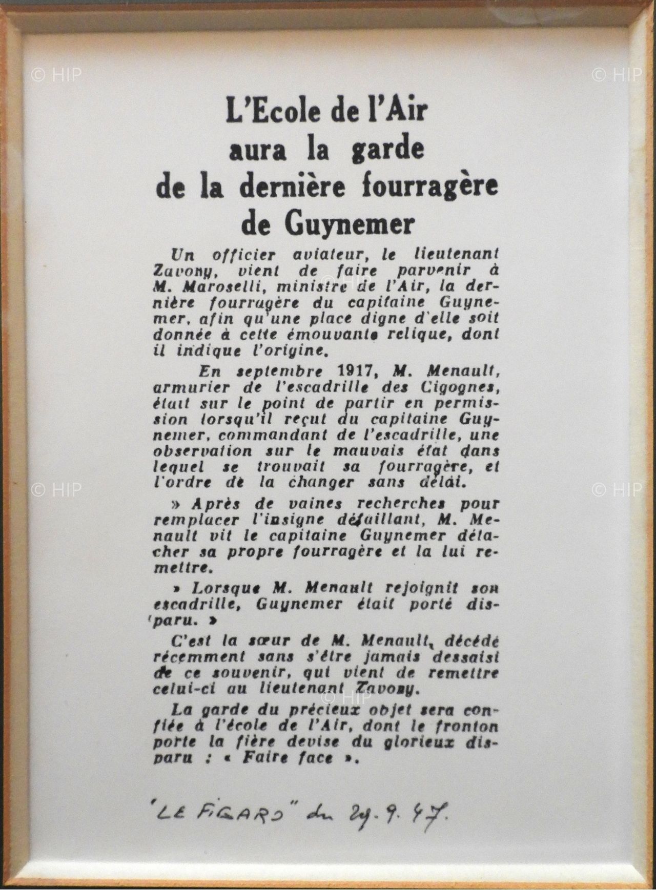 Petite histoire de la dernière fourragère du capitaine Georges Guynemer
