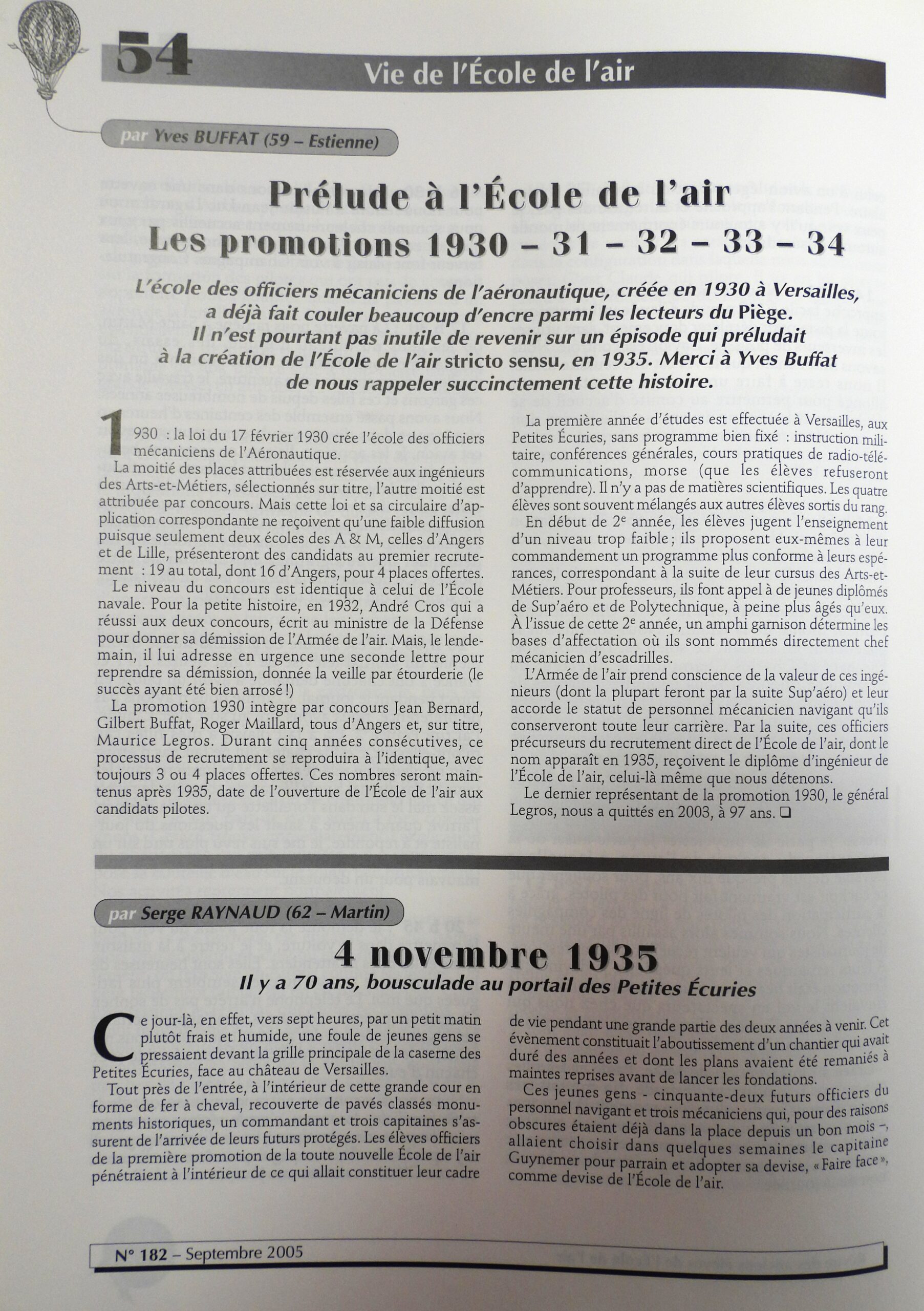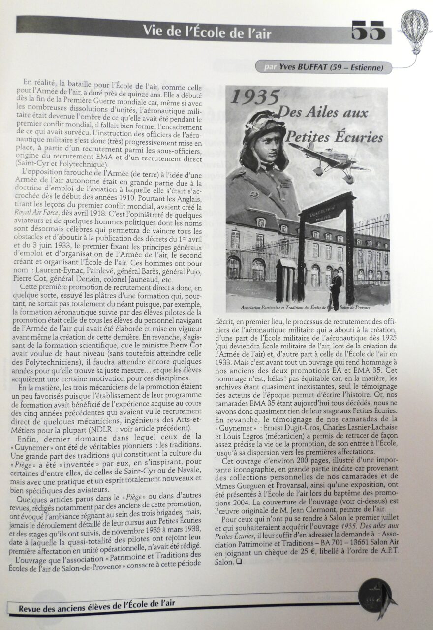 Prélude à l’École de l’air – Les promotions 1930 / 31 / 32 / 33 / 34 Revue Le Piège, N° 182, septembre 2005, p. 54 Revue Le Piège, N° 182, septembre 2005, p. 55 Community Manager Vous aimerez aussi Journal d’un poussin – Le Piège n°165 – Juin 2001 29 janvier 2026 1937 – Les Poussins dans l’Azur Salonais 15 janvier 2026 Il y a 70 ans, Salon accueillait ses premiers « Poussins » 15 janvier 2026